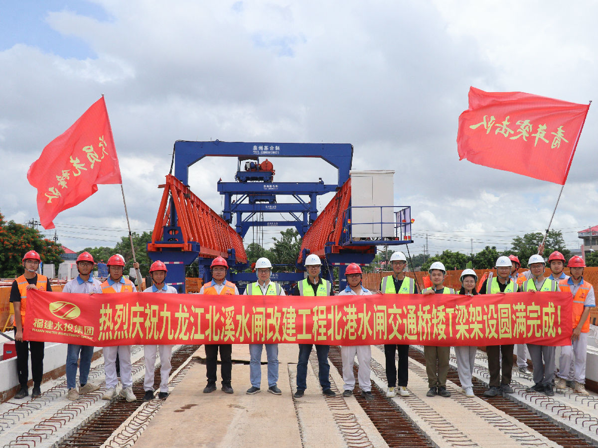 9月8日,北溪水闸改建工程北港水闸交通桥最后一片矮T梁顺利铺设,为后续北港水闸上部结构施工创造基础。