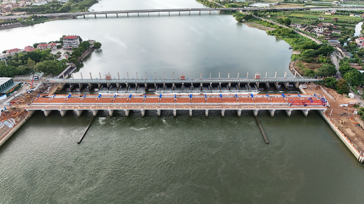 目前,九龙江北溪水闸改建工程正在开展南港水闸围堰施工,预计今年汛期结束后即可同步推进北港水闸上部结构、南港水闸水下部分施工。