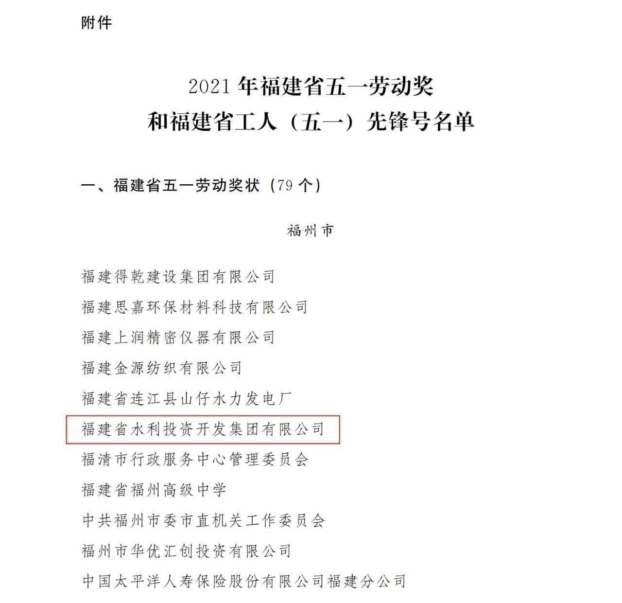 喜报!福建水投九州(中国)荣获2021年五一劳动奖状