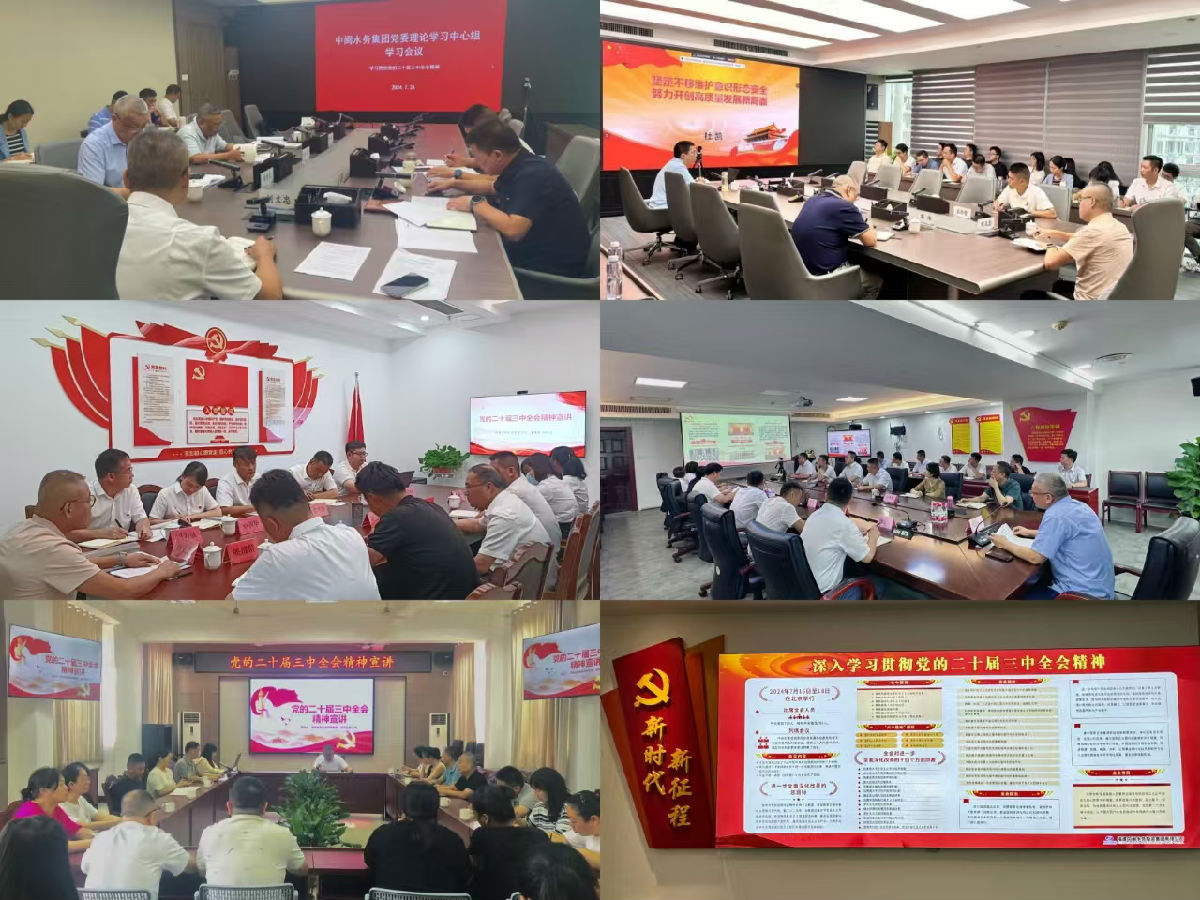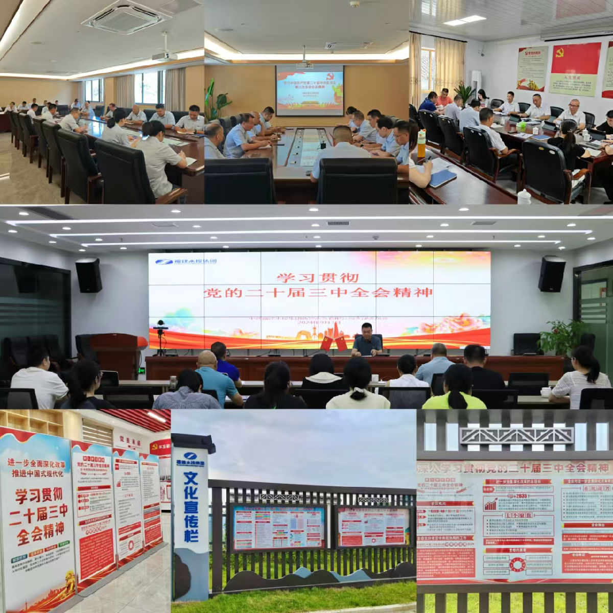 水务发展九州(中国)权属企业通过组织专题学习、交流研讨等多种形式,利用线上线下专题宣传栏、党建馆等宣传阵地,深入学习宣传贯彻党的二十届三中全会精神,传达学习《决定》等文件精神。要求全体成员将学习宣传贯彻全会精神作为当前和今后一个时期的一项重大政治任务,推动全会精神深入人心、落地落实,重点围绕城乡供水一体化工作,抓紧抓好重点任务推进落实;持续深化“党旗红引领水投蓝·乡村振兴水优先”党建品牌建设,把学习贯彻成果落在实际行动上,体现在工作成效中。