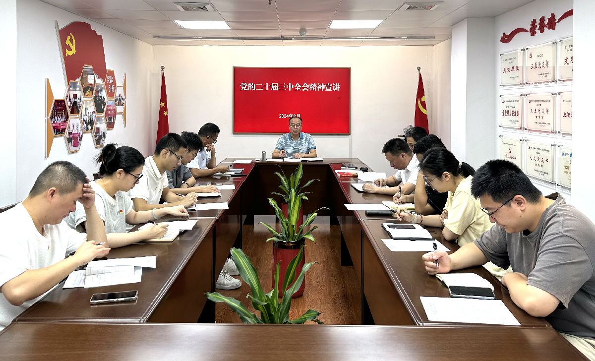 水投设计公司党支部积极掀起党的二十届三中全会精神学习热潮,推动全会精神在公司上下落地生根。一是开展理论学习,“入微入细”学习全会精神。公司党支部第一时间组织全体党员、理论学习读书班成员及青年理论学习小组成员学习会议公报和《决定》,引导公司全体党员干部群众自觉把思想和行动统一到全会精神上来。二是组织主题宣讲,“入情入境”理解全会精神。以党的二十大宣讲团为依托,采用“线上+线下”的方式,已开展党的二十届三中全会主题宣讲6场次,触类旁通、融会贯通,将习近平总书记关于进一步全面深化改革的重要论述与公司改革发展有机关联。三是激活党建矩阵,“入脑入心”贯彻全会精神。依托于全会精神的贯彻落实,持续推进“链上党建”工作,已与13家单位签订党建联盟协议。公司官网、文化墙开设专栏,更新全会相关图文资料,随时学、广泛学、深入学,帮助全体职工深刻领悟党的全会精神要义。