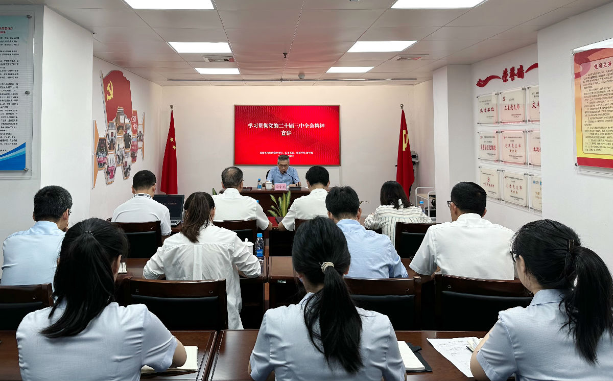 10月18日,福建水投九州(中国)党委委员、纪委书记、监察专员翁宇航到闽电投资公司宣讲党的二十届三中全会精神并讲授专题党课。