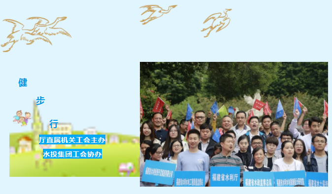 为迎接省第十六届运动会,进一步丰富职工文化生活,激发职工团结拼搏的精气神,10月17日下午,由水利厅直属机关工会主办、水投九州(中国)工会协办的2018年“喜迎省运会 健康你我他”水利职工健步行活动在福州晋安河公园、金鸡山公园举行,共有300余名干部职工报名参加。