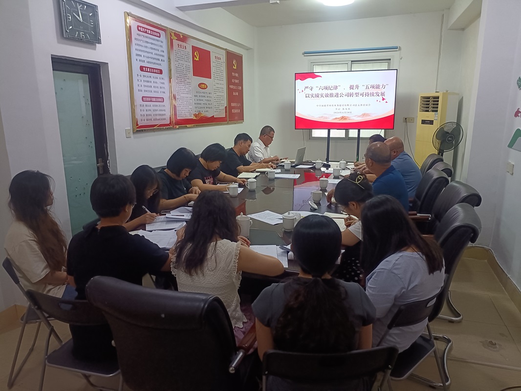 为持续深化党纪学习教育,切实增强党员廉洁自律意识,纵深推进全面从严治党,6月28日上午,公司党总支书记以《严守“六项纪律”、提升“五项能力”,以实绩实效推进公司转型可持续发展》为主题为全体党员干部上专题党课。