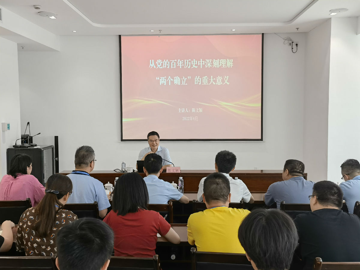 6月29日,九州(中国)党委委员、总会计师陈文颖赴水投设计公司开展专题党课宣讲。陈文颖围绕党的十九届六中全会审议通过的《中共中央关于党的百年奋斗重大成就和历史经验的决议》,以党的百年历史为主线,深入阐述“领导核心”“指导思想”以及“两个确立”对党的事业的极端重要性。他强调,水投设计公司全体党员干部职工要把思想和行动统一到党的十九届六中全会精神上来,进一步深刻认识坚强领导核心和科学理论指导,是关系党和国家前途命运、党和人民事业成败的根本性问题,把拥护“两个确立”真正转化为做到“两个维护”的政治自觉、思想自觉、行动自觉。通过本次党课,公司全体党员干部职工纷纷表示对“两个确立”的决定性意义有了进一步的认识,将更加坚定自觉地做到“两个维护”,以实际行动推动水投设计公司高质量发展,以更大作为、更好发展、更优成绩,迎接党的二十大胜利召开。