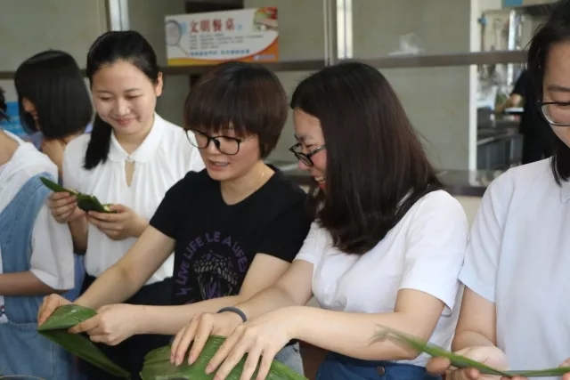 上午10点,包粽子活动正式开始,大家围在一起,纷纷露出看家本领,卷粽叶、放糯米、扎线口,巧手翻飞,气氛异常活跃。