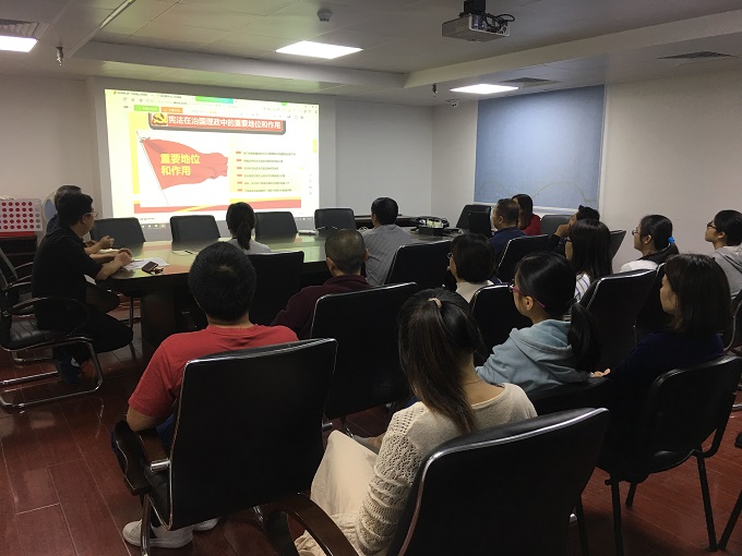 10月19日,省水电物供公司组织全体职工开展宪法学习宣传教育活动。通过收看《学习新宪法》PPT视频课件,公司员工对宪法在治国理政中的重要地位和作用、本次修改宪法的原由、原则、要求以及修改的具体内容等有了更深刻的认识。
