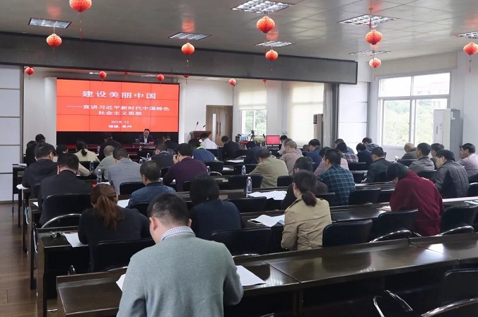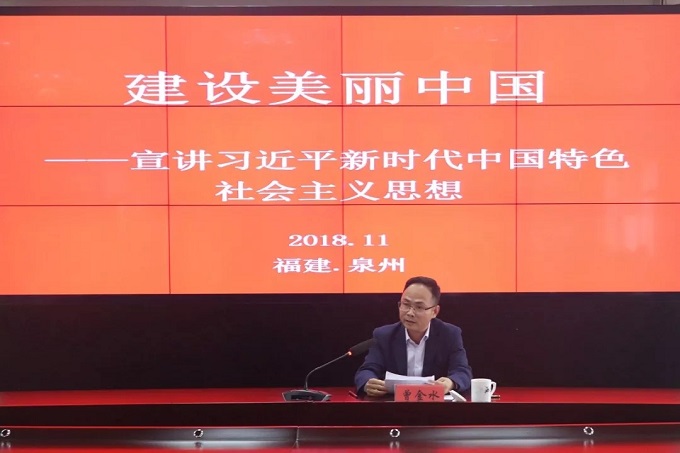 宣讲会上,曾金水带头学习了《习近平新时代中国特色社会主义思想三十讲》有关建设美丽中国的内容,学习建设美丽中国的总体要求,介绍福建在生态文明建设取得的成效。
